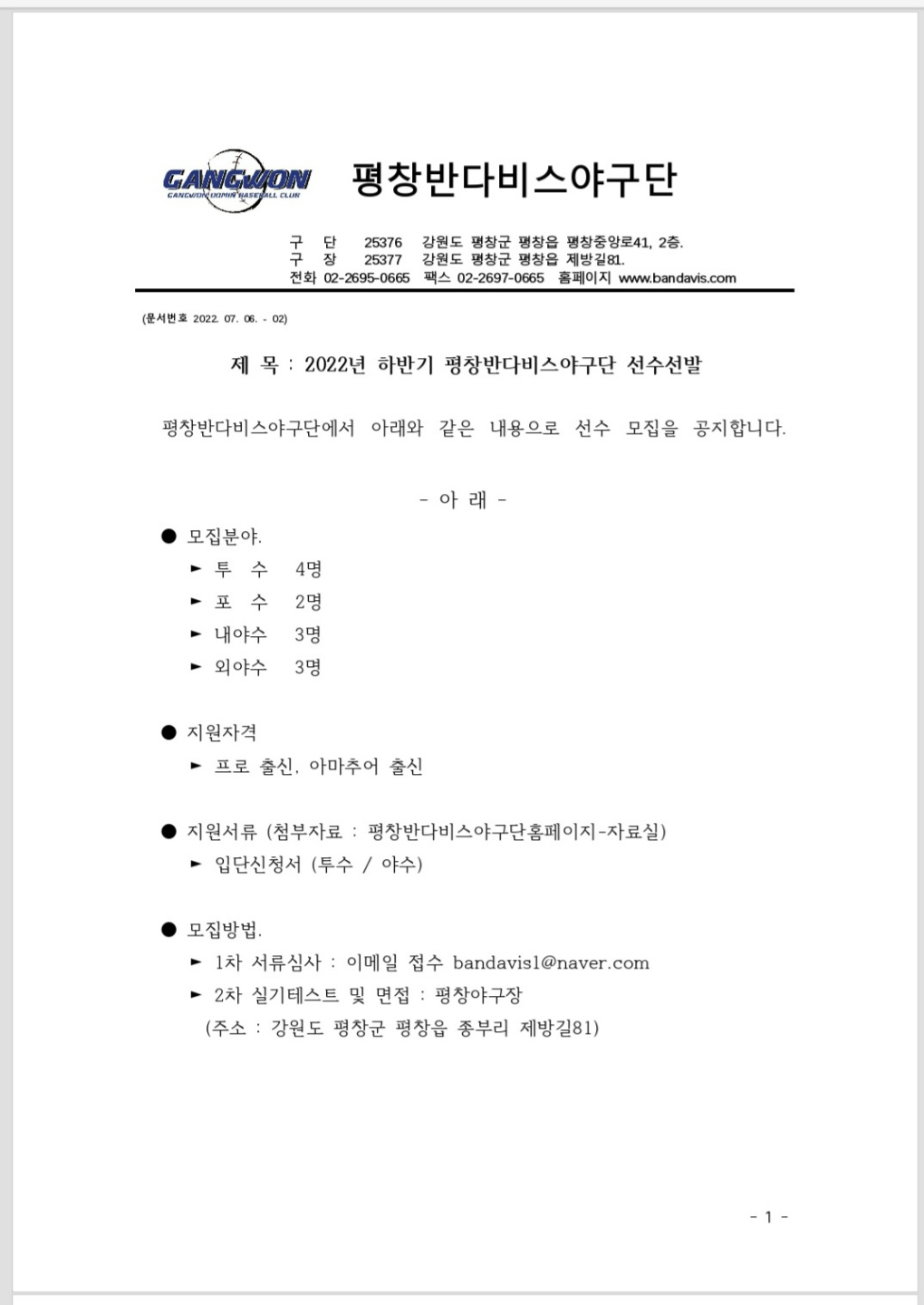 [¹Ý´Ùºñ½º ½Ç¾÷ÆÀ ¼±¼ö ¼±¹ß °ø°í]
